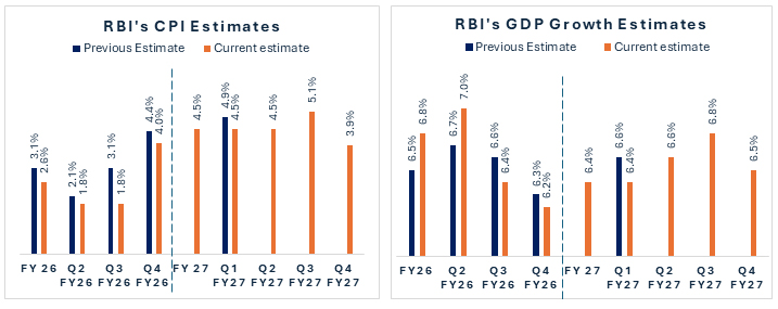 Inflation trends continue to look favorable, with the forecast for FY26 now revised down to 2.6% (our estimates are at 2.6% with a downward bias) a significant drop from the earlier estimates of 3.7% and 3.1%. Core inflation is also expected to stay contained, which is positive for the overall outlook.