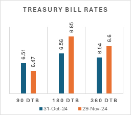 During the month, the 10 US treasury yield surged from approximately 3.6% in mid-September to a high of 4.45%, before easing by 20 basis points as concerns related to the election began to fade. The Indian 10-year benchmark government bond yield also moved up to 6.87% during the month. However, the trump trade fizzled out somewhat towards the end of the months pulling down bond yields from their monthly peak. At monthly closing both the US treasury and the Indian bond yields ended lower compared to the previous month.