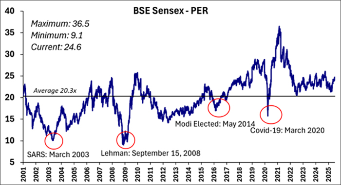 Graph 5: Long Term Valuation Chart of BSE Sensex Around Historic Average