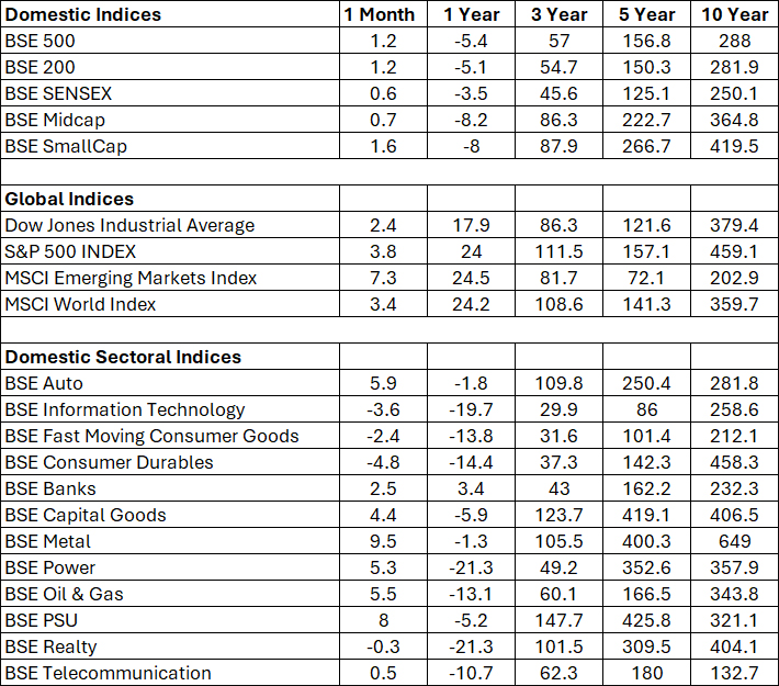 Markets bounced back in the month of September with Sensex gaining 0.6%. BSE mid and small cap indices rose by 0.7% and 1.6% respectively. Some of the key developments during the month were: