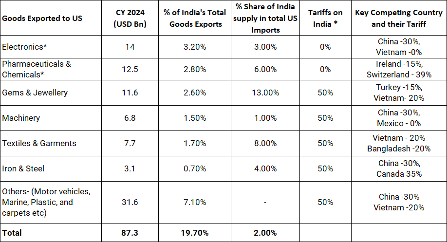 Table 3: Goods impacted by US Tariffs are 1.6% of India’s GDP