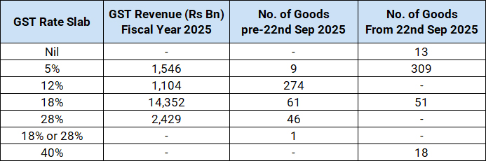 Prime Minster announced rationalization of GST rates, that could simplify the tax system by reducing the number of GST slabs from the current multiple rates to primarily two main slabs of 5% and 18%. We view this development as continuation of reform agenda and may give one-time boost to volume growth for impacted sectors. Lower GST rates in key sectors like auto can improve affordability, especially in the mass segment; this segment has been languishing due to lower wage growth and high inflation post covid.