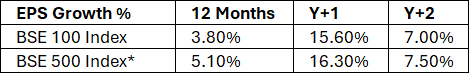 Source: Bloomberg; Data as of 30 September 2025. *BSE 500 has limited analyst coverage due to the larger universe. Y+1 & Y+2 represents 1 year forward and 2 years forward estimates.