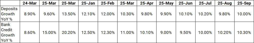 Table 7 : Credit growth has moderated, and Fresh Term Deposit Rates are coming down