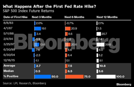 Historically, equity markets have experienced sharper swings following the rise in rates. Even this time, markets ended in green after the announcement. However, this does not necessarily mean that the upside potential is over. In fact, in the previous eight rate hiking cycles, the S&P 500 has risen higher after a year from the first increase every single time, according to LPL Research, Bloomberg. If you look further into the past, out of the 12 rate-rising cycles since the 1950s, the S&P 500 Index has gone up on 11 occasions. None of the rate hikes have been detrimental to equity markets over the long term. It is therefore very important to continue to keep a long-term horizon to weather the market uncertainty and benefit from the compounding of your investment corpus.