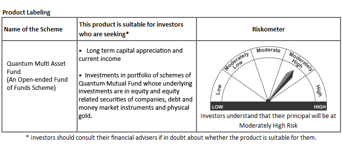 Please visit - www.QuantumMF.com to read Scheme Specific Risk Factors. Investors in the Scheme(s) are not being offered a guaranteed or assured rate of return and there can be no assurance that the scheme's objective will be achieved and the NAV of the scheme(s) may go up or down depending upon the factors and forces affecting securities market. Investment in mutual fund units involves investment risks such as trading volumes, settlement risk, liquidity risk, default risk including possible loss of capital. Past performance of the Sponsor / AMC / Mutual Fund does not indicate the future performance of the Scheme(s). Statutory Details: Quantum Mutual Fund (the Fund) has been constituted as a Trust under the Indian Trusts Act, 1882. Sponsor: Quantum Advisors Private Limited. (liability of Sponsor limited to Rs. 1,00,000/-) Trustee: Quantum Trustee Company Private Limited. Investment Manager: Quantum Asset Management Company Private Limited (AMC). The Sponsor, Trustee and Investment Manager are incorporated under the Companies Act, 1956. |
